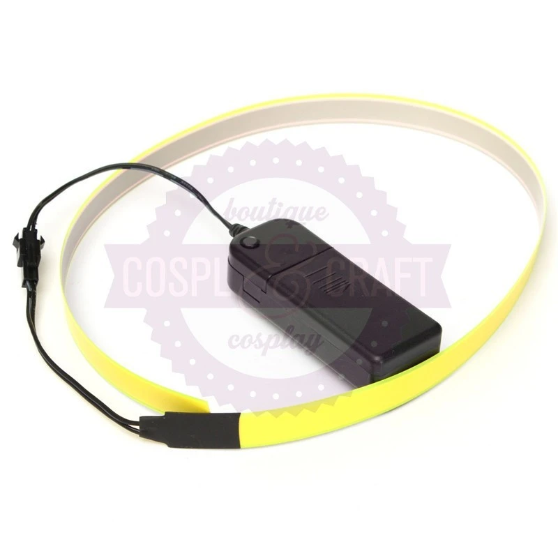 Bande eletro luminescente de couleur jaune. composé d’une bande de 60cm par 15mm (12mm allumés) et de sa batterie alimenté par 2piles LR6 AA (non fournies)
