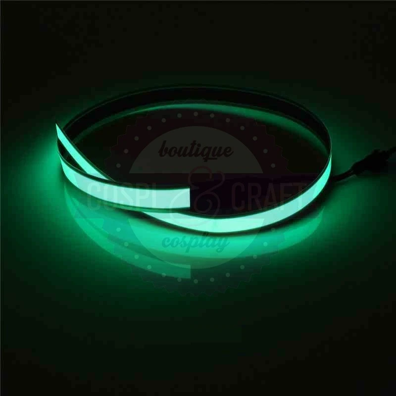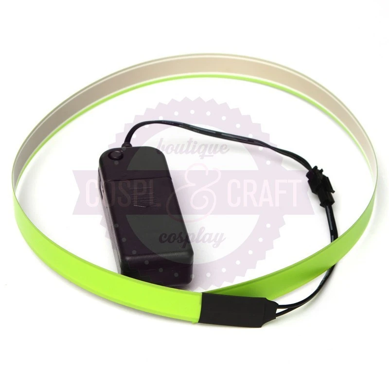 Bande eletro luminescente de couleur verte. composé d’une bande de 60cm par 15mm (12mm allumés) et de sa batterie alimenté par 2piles LR6 AA (non fournies)